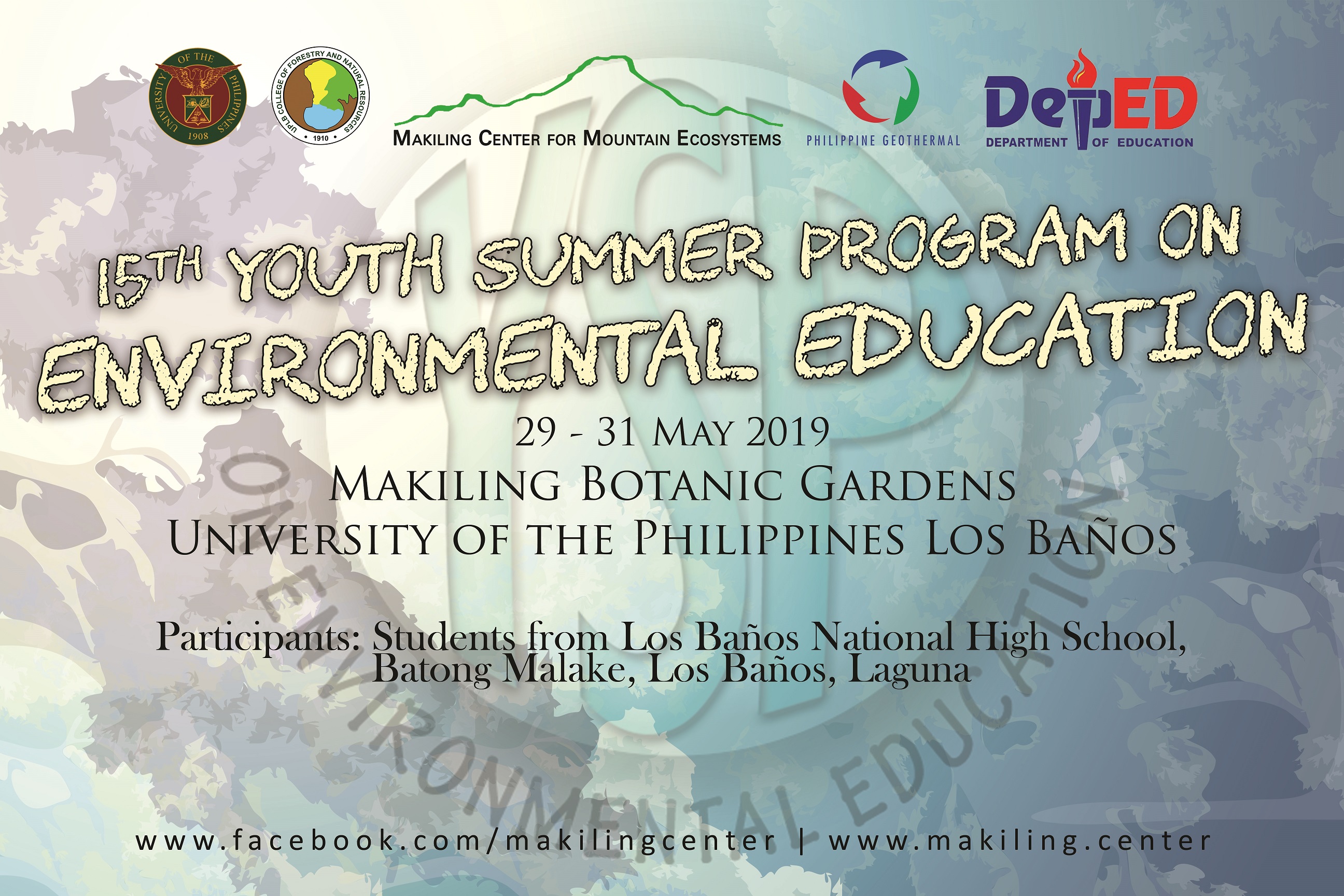Welcome Participants to the 15th Youth Summer Program on Environmental Education 2019!
